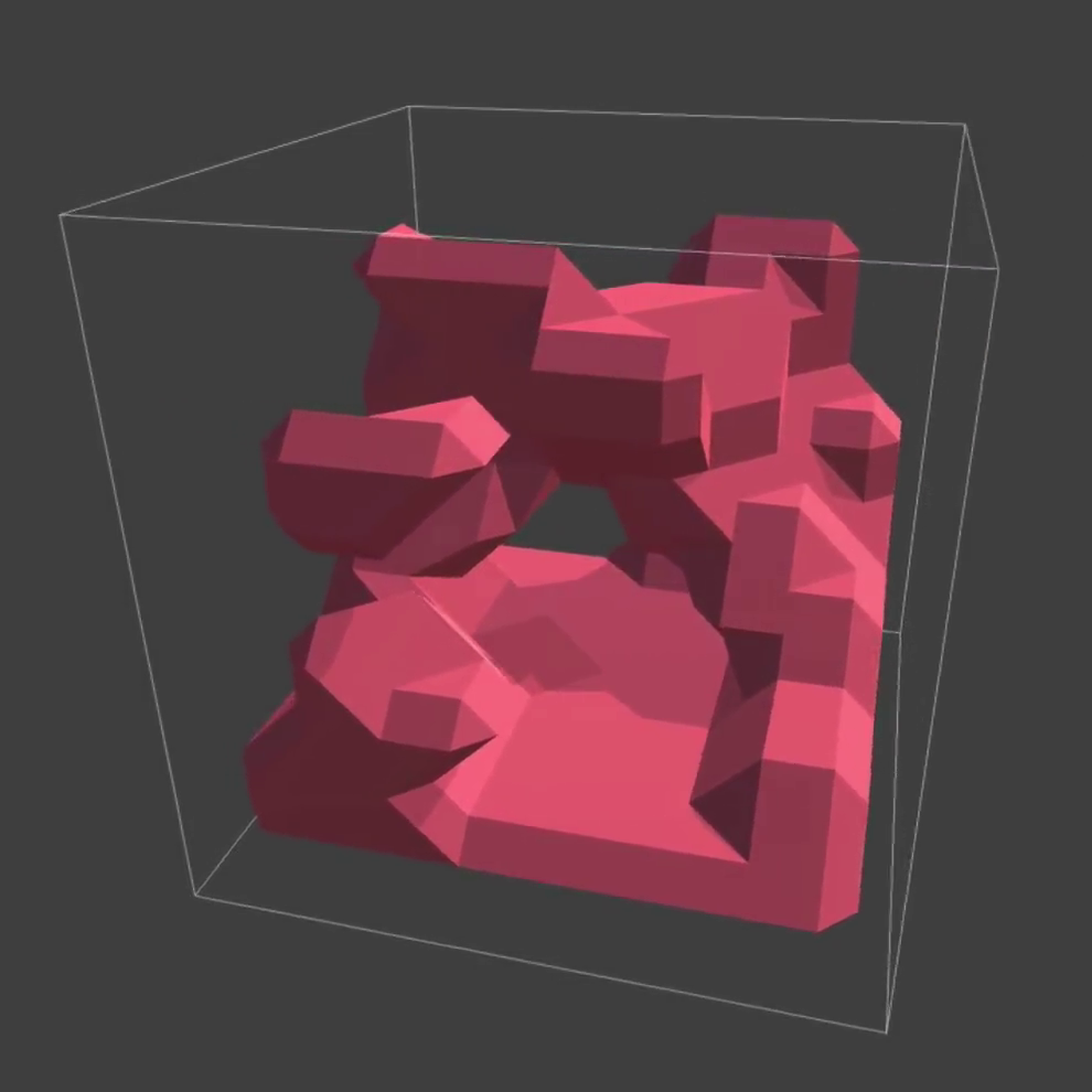 vr headsets display a virtual environment generated from three-dimensional noise. values are filtered by a constant threshold and the resulting vertices are connected by the marching cubes algorithm. changes in the participant’s position and orientation translate into this virtual environment. participants are given the task to find a particular object and return it to their starting position.